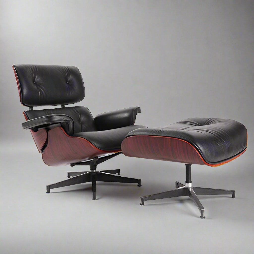 Charles Eames Style Lounge Chair & Ottoman - Dark Rose Wood | Black