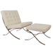 Fauteuil Barcelona Pavilion crème premium avec repose-pieds - Réplique