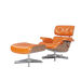 Luxe Lounge Chair & Ottoman in Camel Brown Waxed Leather and Walnut Wood